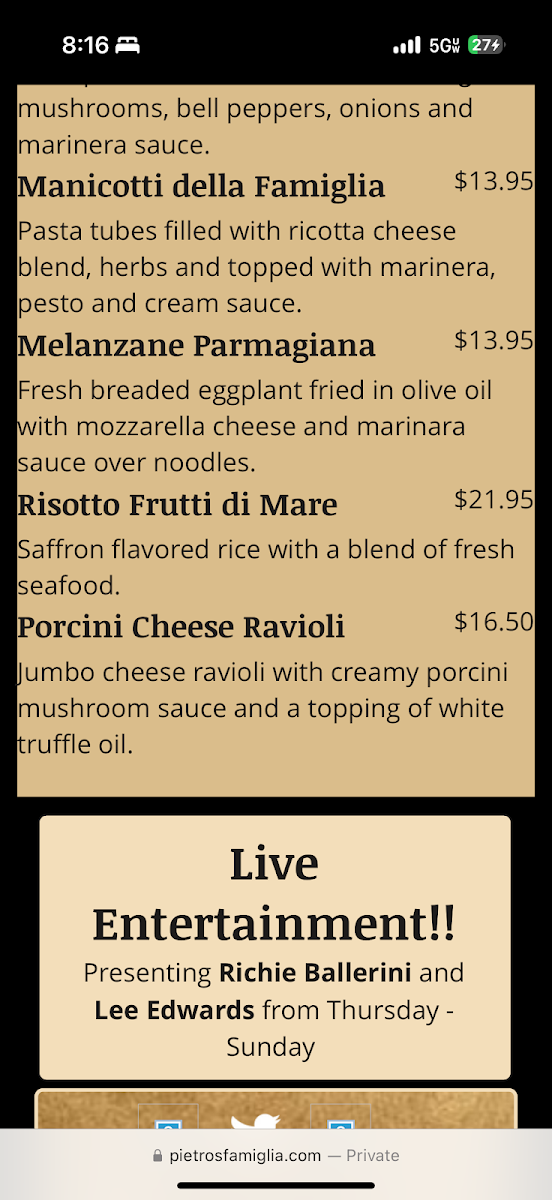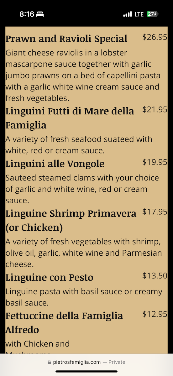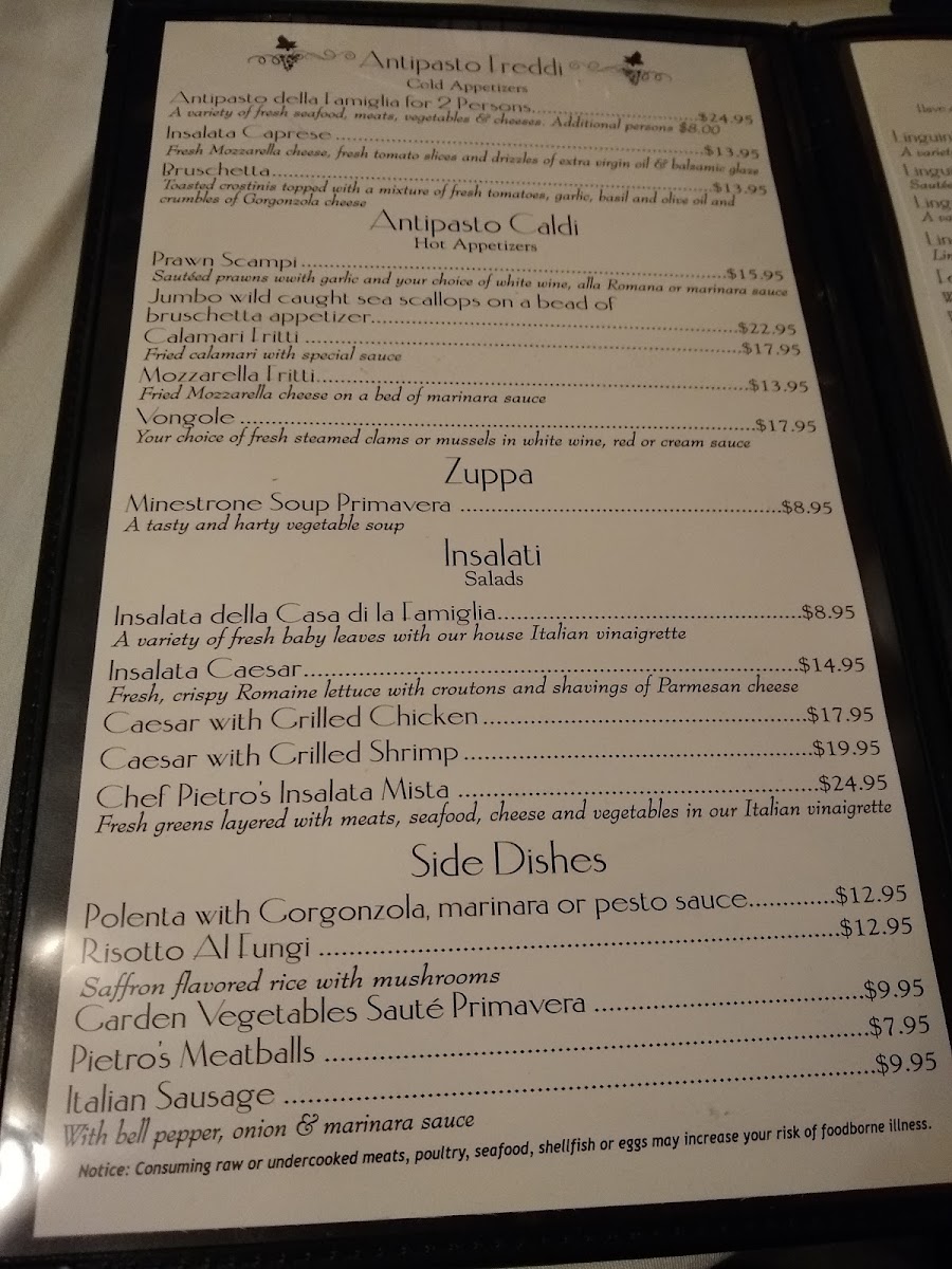 Pietro's Famiglia Menu